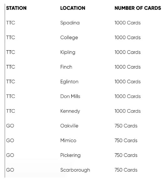2018年10月17日小编最新爆料:大家在10月初领到免费的Presto Card了吗?如果没有的话,第二次免费发卡又来了,今天(10月17日)大家可在以下几个特定的地铁站和GO火车站中领到免费的Presto Card。这是丰银体育馆为了庆祝新赛季的开始分别在10月3日(多伦多枫叶冰球队开赛日)和10月17日(多伦多猛龙篮球队开赛日)所举行的庆祝活动,分二次发放1万张免费的Presto Card。每张卡里都有$6-8的预充价值。在TTC地铁张中领取的有$6,在Go Train火车站领取的$8加元。二次活动都是下午4点开始发放。鉴于第一次发放时的疯抢情况,建议想取到卡的网友们至少提前一个小时去排队。TTC准备逐渐用Presto Card取代纸质车票和TOKEN,最新的福利是2018年从8月26日开始,使用Presto Card乘坐TTC,能享受两小时内无限转乘的服务。