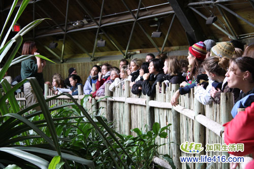 动物园的讲解员正在为大家讲解大猩猩(金钢)的一些知识,看这些大人们听得多入神啊