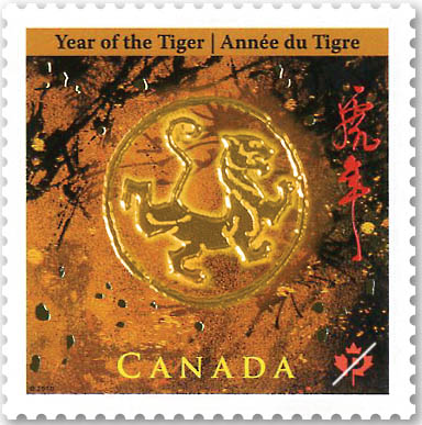 加拿大邮政局于1997年首次发行农历新年生肖邮票系列,系列之首是1997年的牛年邮票,系列之末2008年的鼠年邮票。2010年的虎年邮票则是加拿大第二次发行的虎年生肖票。新一系列的生肖邮票与旧系列有显著差别:新系列包含金箔及创新的浮雕印刷技术;在邮票设计概念方面,新系列会引入“五行”因素。