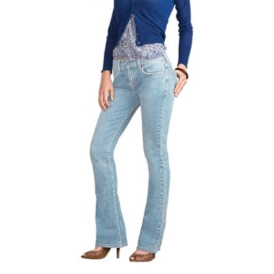 这种就是低裆( Sits Below Waist )喇叭口(Boot Cut Leg)牛仔裤。
