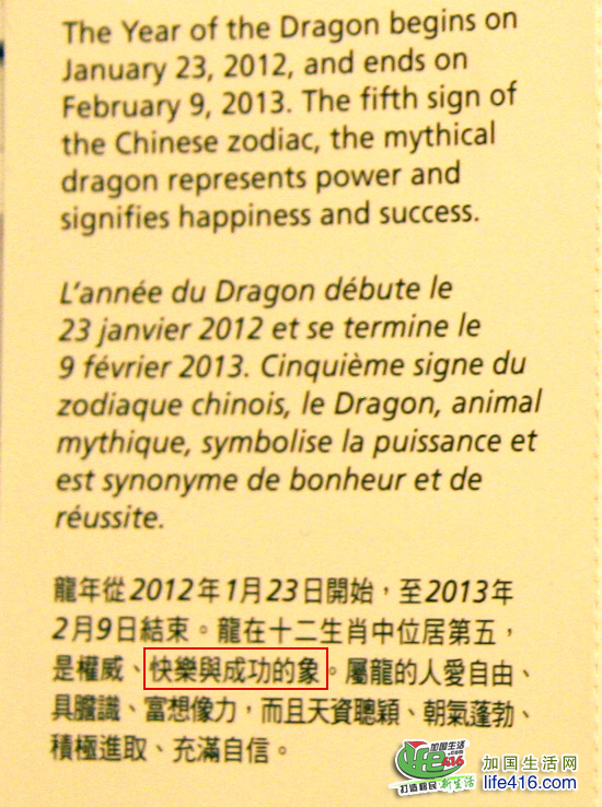 加拿大华裔发现2012龙年生肖邮票套票封面现错漏字(图)