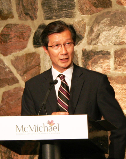 2012年5月23日晚6点,泰戈尔画展的预展在麦米高美术馆举行,印度驻加高级专员Gavai、安省省长麦坚迪、安省旅遊、文化及体育部长陈国治出席并致开幕词。加国生活网记者专门采访了安省旅遊、文化及体育部长陈国治部长,请他介绍一下此次画展的情况: