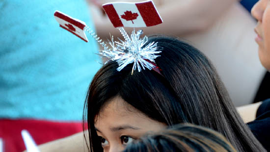 如果你觉得加拿大人少,那你一定要在这天去Mississauga 新整修的庆祝广场(Mississauga Celebration Square),因为那里是People Mountain,People Sea,这句中国的成语用在这里最合适不过了,人山人海。