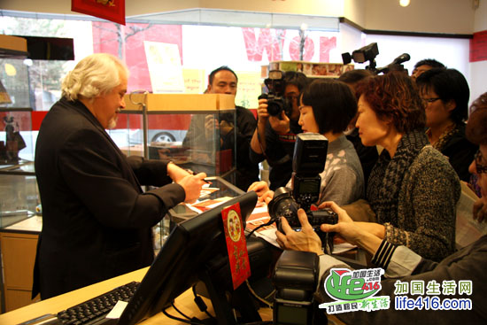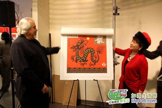 2012年1月10日当天,加国生活网小编专门去多伦多市中心的Toronto Atrium on the Bay Post Office 采访龙年邮票的首发仪式。现场可热闹了,好多华人在买龙年生肖邮票。该邮票的设计师Louis Fishauf 也在现场,大家买了后还可以签名,邮品就更有纪念意义了。