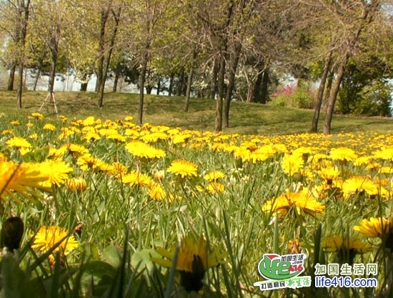 【加国生活网】这几天,开车行进在多伦多的大街小巷,遍地都是黄花。如果眯起眼睛看车窗外,眼前全是金黄。不过几个星期后,这些黄花就会全部变成蒲公英,那时的颜色就没有现在这么亮丽了。多伦多四处都是草地,每个社区的前前后后都有大片大片的。以前租别人家house那会儿,晚饭后最舒服的事儿就是出去散步,那儿前后有两个大草坪,每个都有足球场那么大,你可以在那儿想玩什么就玩什么。这么大的草地,如果是放在国内,要么就是让房地产开发商拿去盖高楼了,要么就是围上栏杆,写上“请爱护草地”,以致于刚来多伦多那会儿,我每次在柔软的草地上散步的时候,心里总是有点不安,生怕有人从什么地方跳出来大骂我不爱护公物。