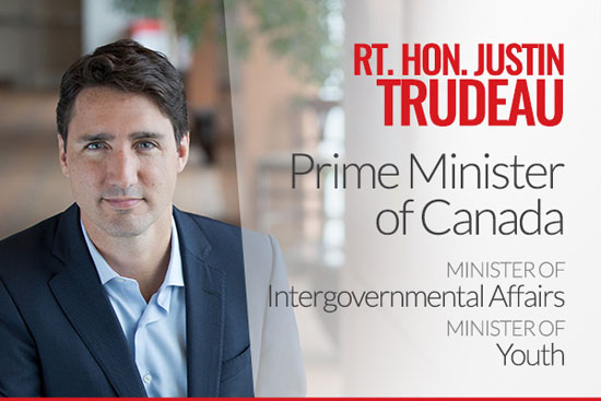 贾斯汀.特鲁多(Justin Trudeau):总理,兼任政府间事务部长
