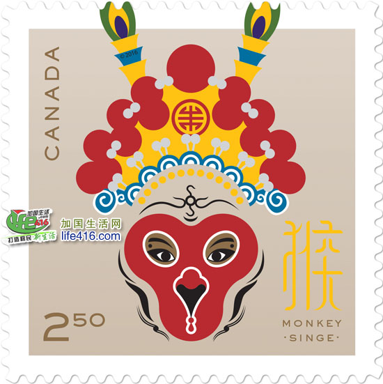 加拿大2016猴年生肖邮票于1月11日正式发行及购买攻略(组图)