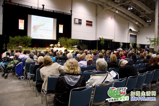 这个介绍如何插花的讲座吸引了许多人,这也是从另一个角度来看加拿大人有多爱花爱植物。要知道,在这个厅的四周的小房间里同时还举行了好几个讲座,全都爆满哟。