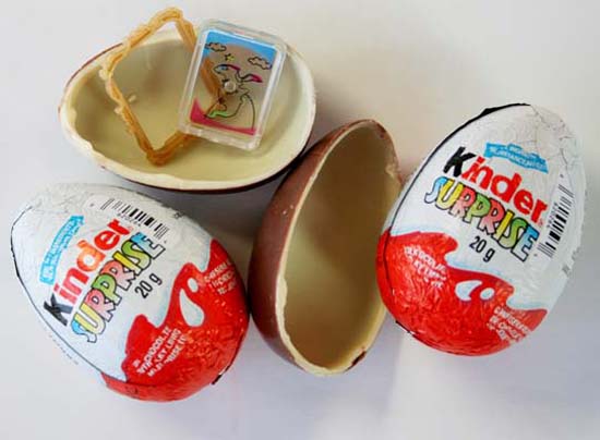 全球知名的朱古力“出奇蛋”原产于德国,“Kinder”是德文小孩的意思。不过,由于朱古力蛋内藏有“惊喜”玩具,因此美国以儿童容易吞食导致窒息,产品不适合儿童食用而在全国禁售及禁止食用。