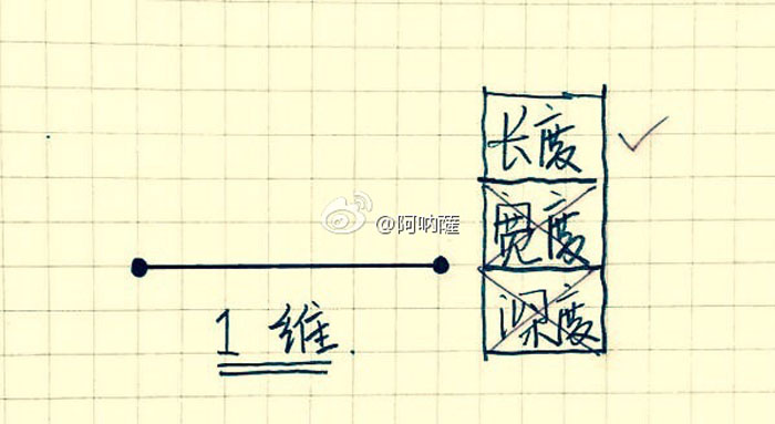 为了让大家了解三视图我就顺便科普了一下什么是零维.一维.二维.三维空间,请同学们打开脑洞,看我用一支笔几张纸来为同学们展开从零维空间到十维空间之旅吧!