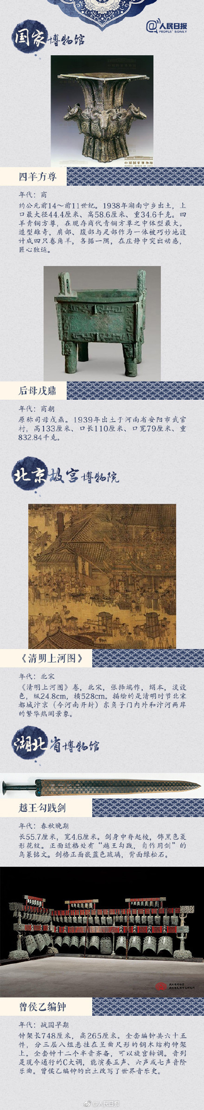 文物承载灿烂文明,传承历史文化。作为世界文物大国,我国各地博物馆中的珍贵藏品数不胜数,满载着历史的沉浮沧桑。它们的镇馆之宝都是什么?四羊方尊、清明上河图、素纱禅衣…这些你都看过吗?今天,国际博物馆日,九图带你大开眼界。