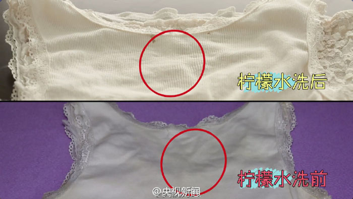 首先,将柠檬切片放进水中煮沸,再用煮好的柠檬水分别将两件衣服浸泡15分钟。15分钟再按照正常的洗衣步骤进行清洗。记者没费多大劲的揉搓了几下后,衬衫上面原本的汗渍黄斑已经消失了,而另一件整体发黄的衣服上的黄斑也在逐渐变淡。