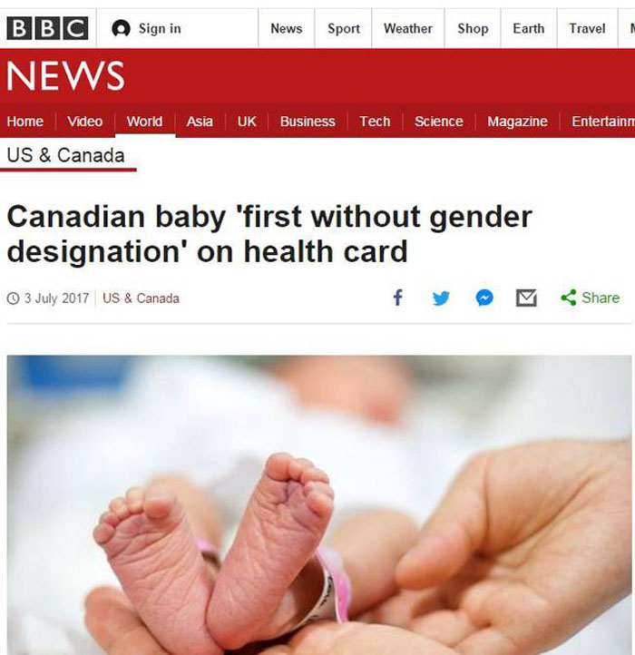 英国广播公司(BBC)7月3日报道称,婴儿的父母科里·多蒂是一名双性人。多蒂称,出生时的视觉检查无法确定一个人在以后的生活中会认同什么样的性别,他希望等到孩子有自己的意识之后,自己决定想做什么样的人。