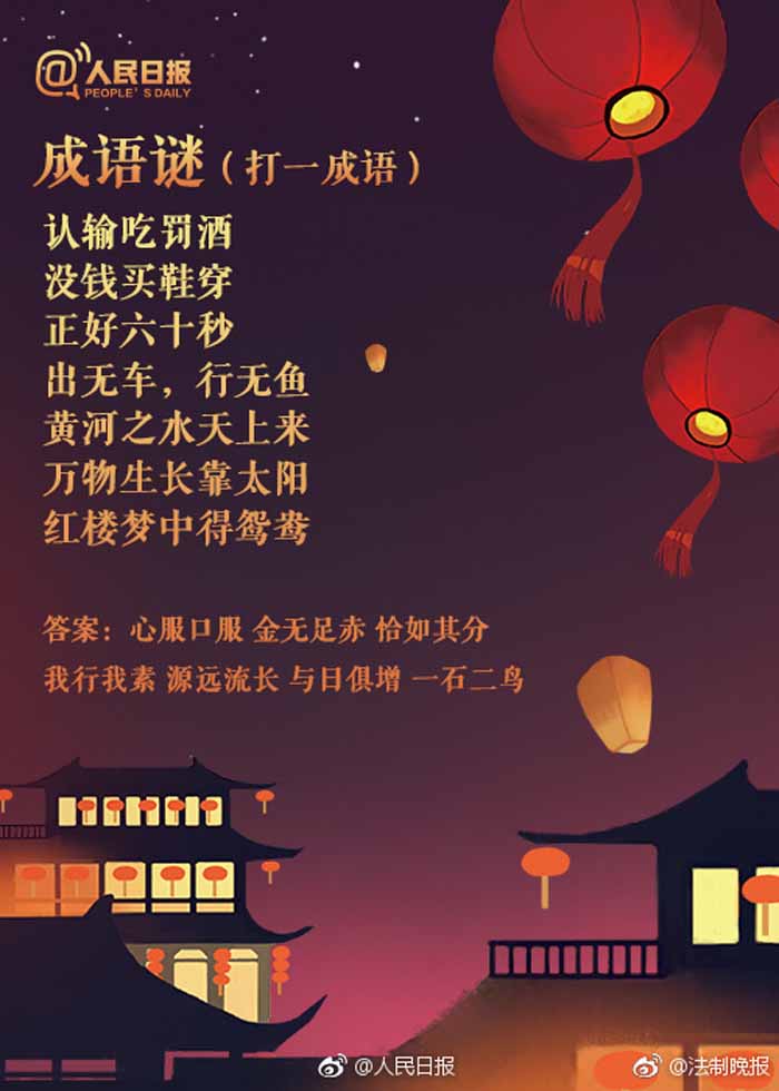 一起猜灯谜 欢欢喜喜闹元宵 看看你能猜对几个