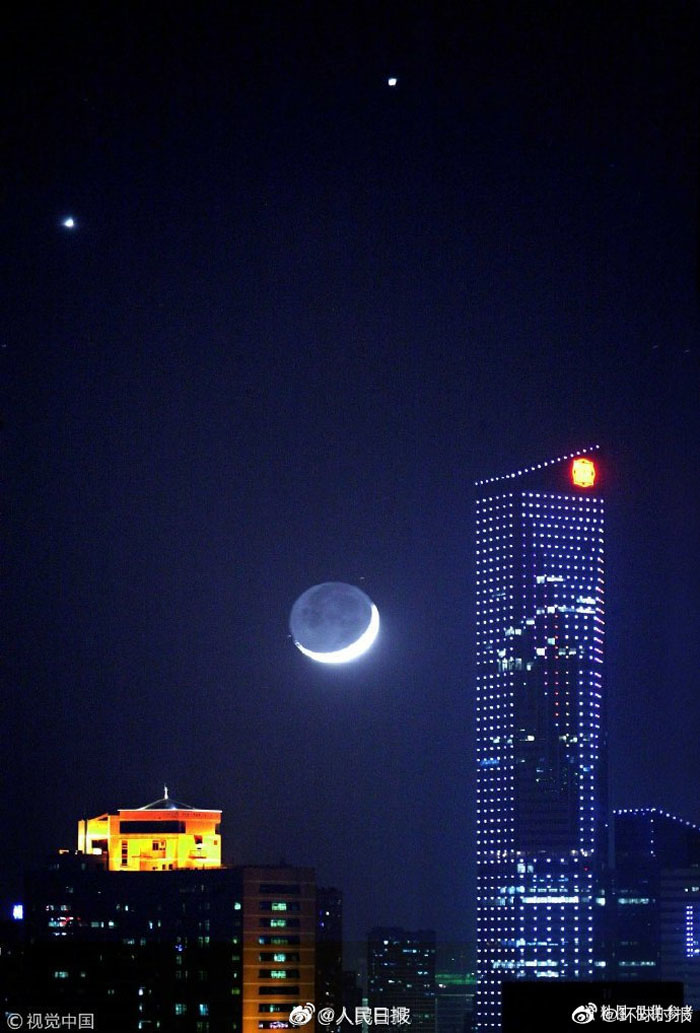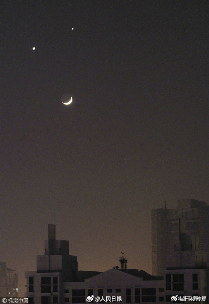 6月9日双星伴月天文美景:木星 土星“合”月 三者组成一个“三角形”