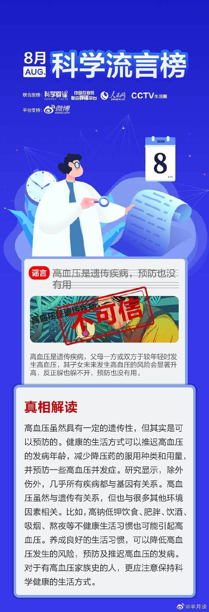 高血压是遗传疾病,预防也没有用?奥利司他是“无副作用减肥药”?自来水中有避孕药?打呼噜是睡得香?...这些谣言别信!@科学辟谣 联合@中国互联网联合辟谣平台 @人民网 @CCTV生活圈 与@微博辟谣 为你一一解读真相。