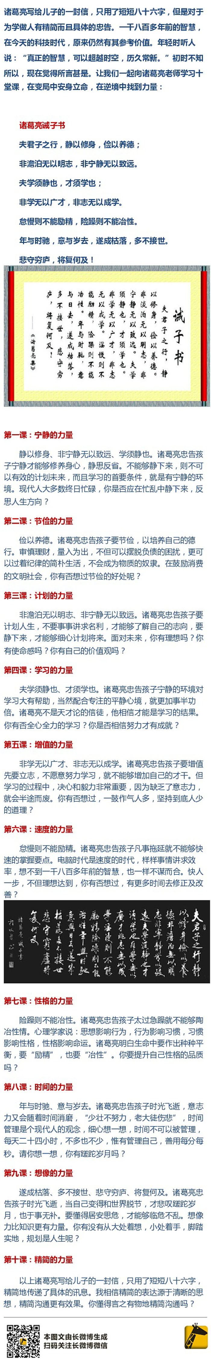 诸葛亮写给儿子的一封信 仅86字影响人一生