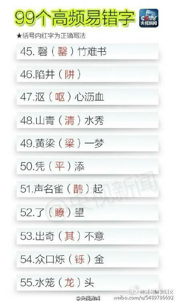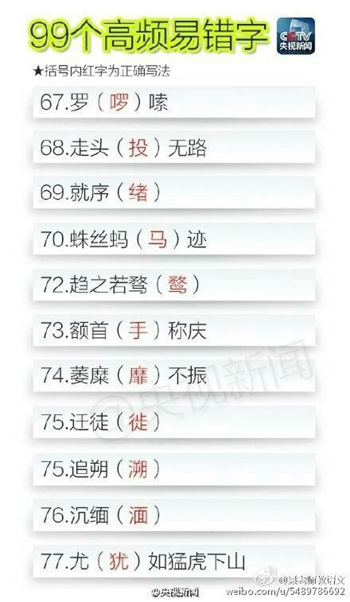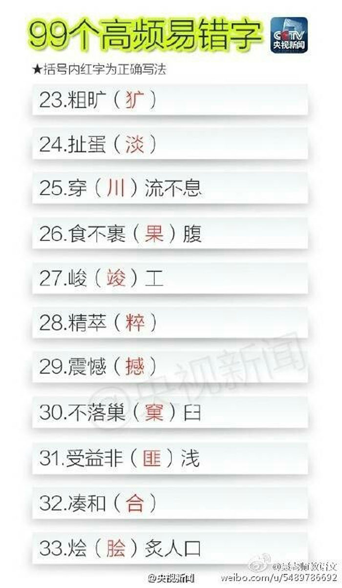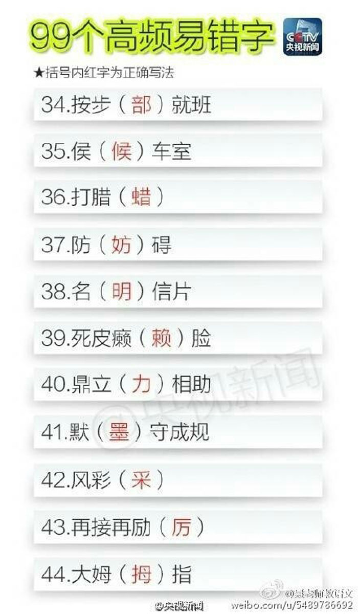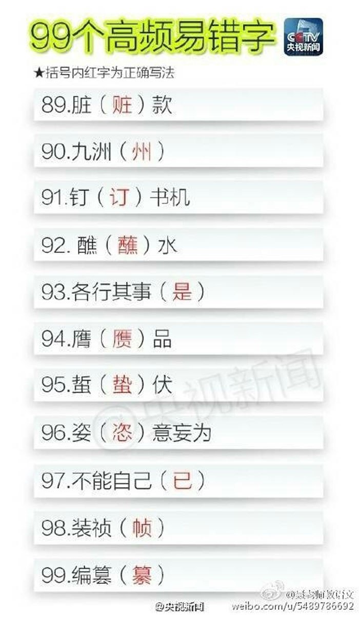 90个高频易错字 速来测试一下自己对多少