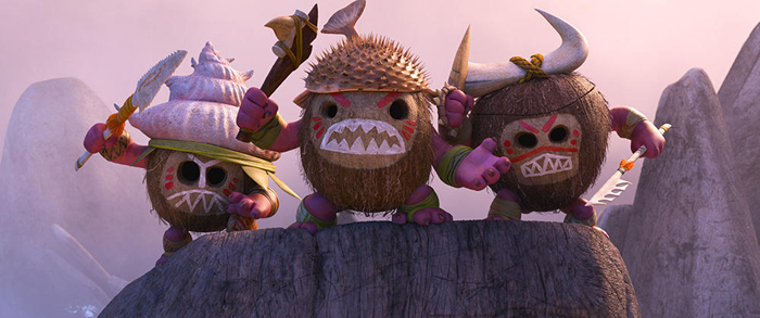 制片方设立了一个专门的羽毛组来处理羽毛的问题。这不仅仅是为了憨憨,还包括毛伊借助鱼钩法杖所变幻出来的巨鹰。因为羽毛相互层叠的特质,它在电脑动画领域是一个非常巨大的挑战