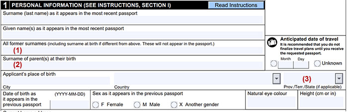 小编google了一下,发现好多加拿大人都被这一项难住了,有些人建议写“father-XXX / mother-XXX”,有些人建议还是和以前一样写mother's surname。小编后来在reddit网站找到一个比较靠谱的帖子(英文的,请点击这里查看),好多加拿大人都在讨论这个问题,有个自称是工作人员的人回复说“这一项其实依旧要求提供您母亲的婚前姓氏(Mother's maiden name),因为您母亲的婚前姓氏有助于确认您的身份,该姓氏也会出现在您的出生证明上;这个问题的另一点是可以确定您过去可能使用过的任何其他姓氏,因为您父亲的姓氏可能在他生命中的任何时候都没有改变,很有可能这也是您使用的姓氏(当然,情况可能并非总是如此),而您母亲在婚前更有可能有不同的姓氏,这是官方需要包含在您的档案中的名字(即使您自己没有使用过)“。后面的跟贴分析,很有可能是因为加拿大的性别系统比较复杂,为了防止在性别上有分歧,官方这才改变提问题的方式。后来小编在递交申请表时也特地问了一下:“这一项如果只写mother surname是否可以?”,答复是“It's fine”。也就是说,网上那位工作人员的说法是可靠的。小编的理解:这一项填写,无论是只写mother surname还是“father-XXX / mother-XXX”都是可以的,因为这一项信息并不出现在护照的页面上,只会出现在官方系统里。重点在于信息的一致性,10年前你写的是啥,10年后你写同样的信息就行了,因为官方在系统里有你之前申请护照时的所有记录。由于小编在10年前写的是mother surname,10年后便填写了相同的内容。