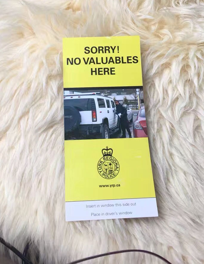 警察真的建议把这个卡片放在driver那边的窗上,这不就是“此地无银三百两”吗?不知道是加拿大的贼笨还是警察更笨!!