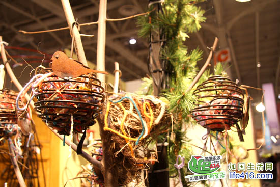 又发现了一个可以挂在圣诞树上的产品—鸟窝。其实鸟窝本来就是呆在树上的,只是经过这样一“处理”后,呆在树上就更漂亮了。