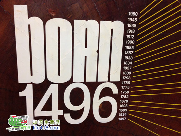 安省科技馆里到处都是各样各样的知识,比如这个大树根展示了这棵树的生长历史,1496年出生。