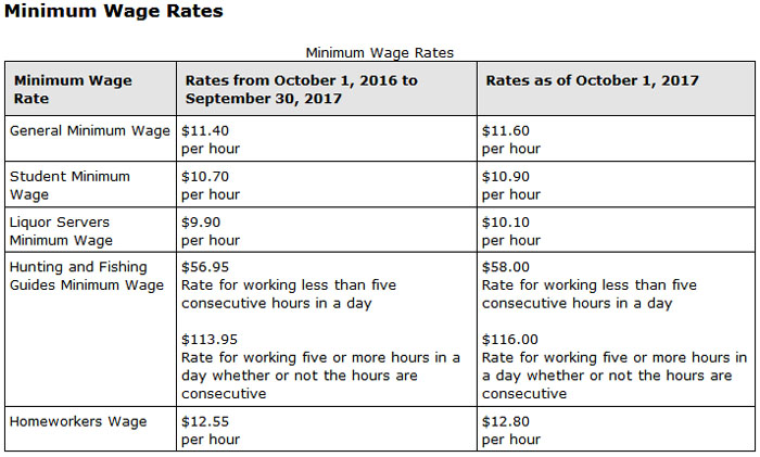 安省的最低时薪曾于1996年至2003年间冻结,于2004年解冻时的最低薪金为每小时6.85元。时届今年10月1日,这个最低时薪将上升至每小时11.60元。