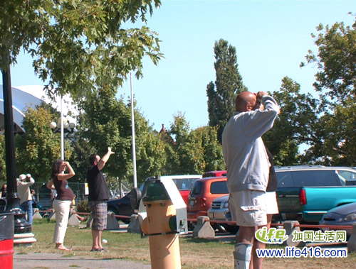 空中的飞行表演十分精彩,这些人的动作也相当统一,什么也不顾了,看表演要紧。