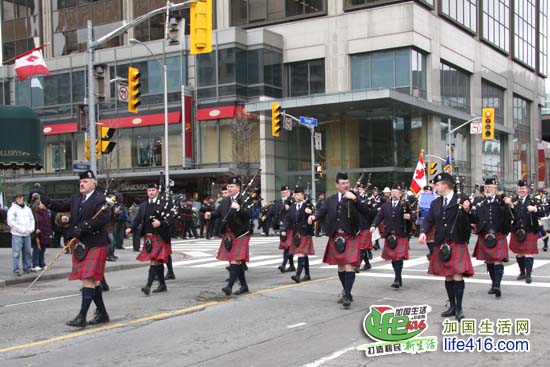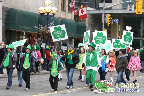 【加国生活网】每年的3月17日是爱尔兰人的St. Patrick's Day,在加拿大多伦多居住的爱尔兰族裔都会举行盛大的St. Patrick's Day大游行,一般都会在离3月17日最近的那个星期天中午12点举行。虽然三月的多伦多仍寒风阵阵,但仍挡不住多伦多市民参与这个活动的热情。