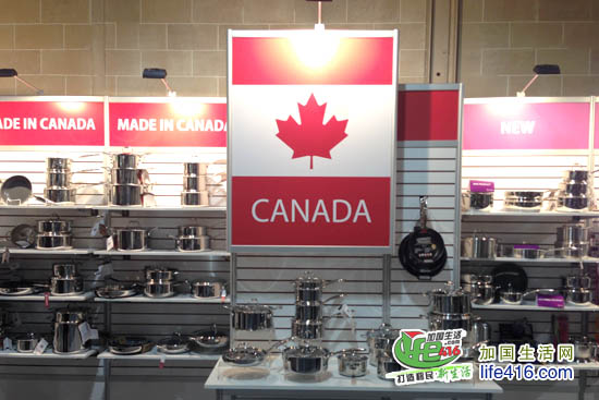 现如今的多伦多礼品展,Made in China 的产品太多了,反而Made in Canada 的产品很难找到。这家来自爱德华王子岛的名叫Paderno 的公司就另辟蹊径,把一个大大的国旗贴在最醒目的地方,让大家知道他们的产品绝对是产自加拿大的产品,质量上乘。