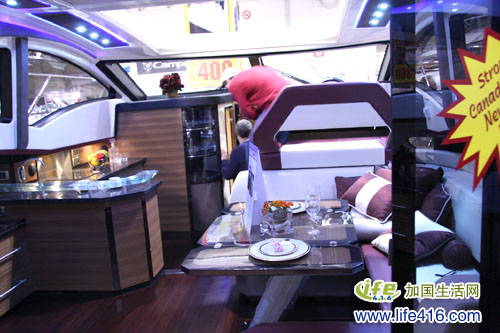 这种游艇就是我说的4万至8万的游艇。在展览会期间,许多公司还在搞促销,降价1万至2万呢。也就是一辆车的钱,怎么样,还不错吧,里面的座都是皮制的呢。