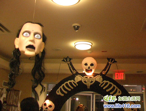 【加国生活网】傍晚回家,到公寓大堂的信箱去取信,一走出电梯,看到头顶上挂着颗“人头”,嘴还在那里一张一合地发出“恐怖”地声音。看,就是这幅景象: