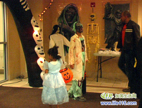 满眼都是戴着尖尖帽子的小巫师、小僵尸、小仙女、小精灵……拿着大包大筐来要糖果。而我们这幢公寓里的一群小朋友,也已经打扮完毕,正准备出发,到邻近社区去“Trick or Treat”。