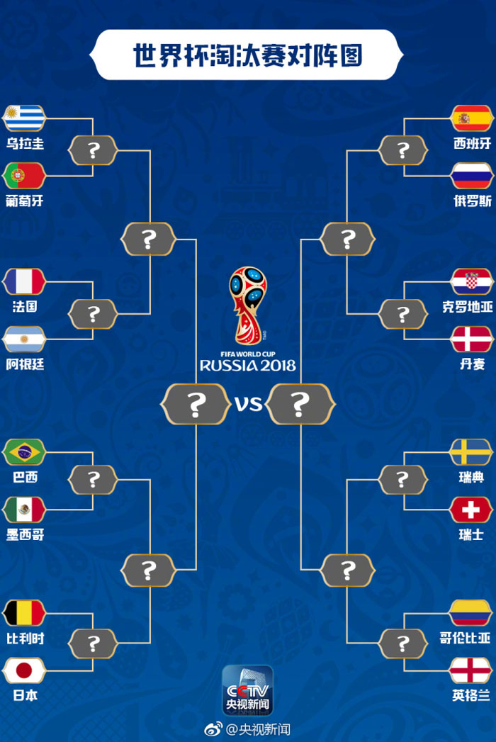经过三轮比拼,2018世界杯小组赛已全部结束。16强对阵全部出炉。上半区可谓豪强扎堆:乌拉圭VS葡萄牙,法国VS阿根廷,巴西VS墨西哥,比利时VS日本;下半区则是黑马横行:西班牙VS俄罗斯,克罗地亚VS丹麦,瑞典VS瑞士,哥伦比亚VS英格兰。谁是你心目中的冠军?