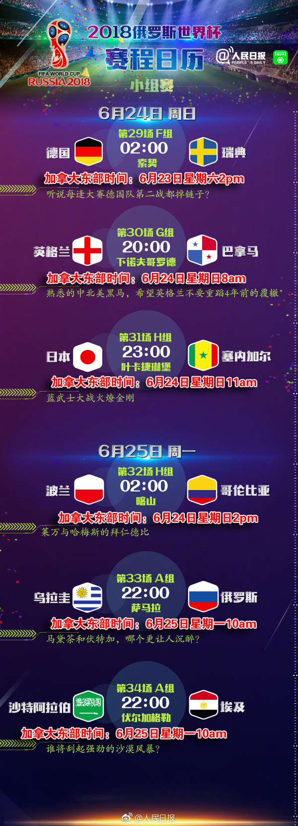 加国生活网小编根据@人民日报 做制作的“世界杯赛程日历”以及加拿大东部时间,制作了加拿大东部时间的“2018俄罗斯世界杯完整赛程时间表”,希望能对在加拿大的华人球迷们有所帮助。