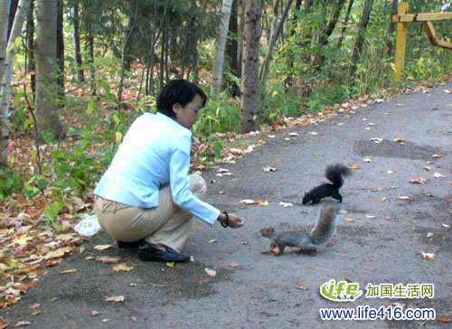 到爱德华王子公园赏枫叶,记得带点花生一类松鼠爱吃的东西,因为随时都会有小松鼠跑出来问你要吃的。