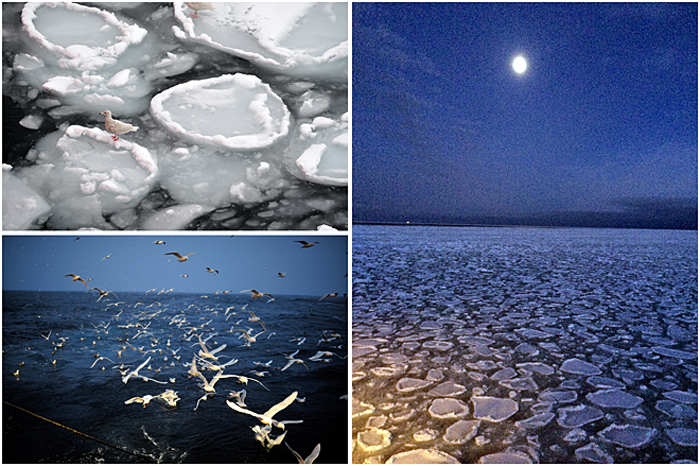 船长不得不放弃了捕捞作业,全速顶浪行驶直到寻找到粘稠的冰粥。