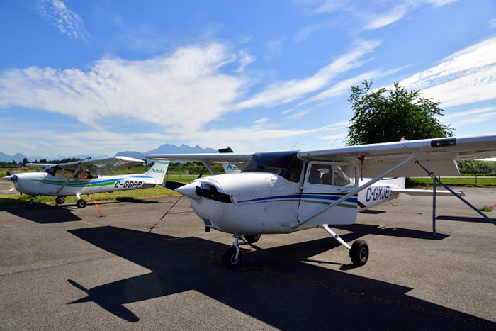 这就是带我们飞行的小飞机,是孙总接手航校后最新购置的Cessna 172S单引擎飞机,算上两名驾驶员,只能座4人,大概要28万美金一架,听说当年原先的加拿大航校已无法运转,孙总接管后,重新注入资金,返聘原先的本地管理人员和教官,现在国内每年各大航空公司(包括国航、南航、东航等)都有派送的学员在此学习飞行,原来未来机长是如此成长的。本次领飞的是加拿大蒙代尔飞行学院(Montair)的资深教官Mon。