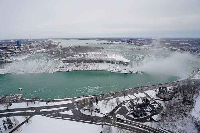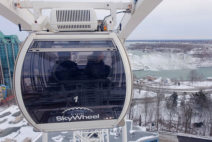2、最浪漫的是当属摩天轮。这也是俯瞰角度。摩天轮缓缓的一圈又一圈,面对着美国和美国瀑布。感觉很适合日落时分和恋人一起。