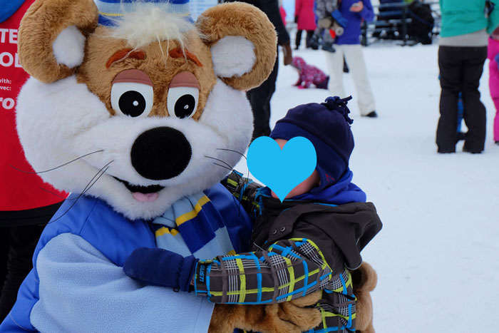 但我最喜欢雅克-卡地亚公园。这里的冰雪王国里不仅可以滑冰梯,玩狗拉雪橇,还有着冰雪嘉年华上最可爱的吉祥物:冰鼠。冰鼠爸爸带着冰鼠妈妈,还有双胞胎的儿女会不时出现在公园内,和人拥抱,拍照合影。