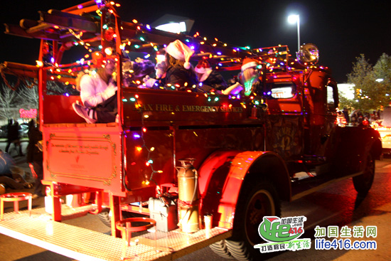 【加国生活网专稿】位于多伦多北部的安省Ajax小镇每年都会在夜晚举行圣诞老人大游行活动,同白天举行的圣诞大游行不同,晚上举行的一定是需要光的,于是这个被各种各样的“烛光”所装饰的大游行就别具特色了。