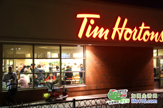 圣诞老人大游行让路旁边这家Tim Hortons 店异常火爆,11月夜晚的AJAX 小镇还是挺冷的,许多人来到这家店买咖啡,队伍都已经排到了门口。