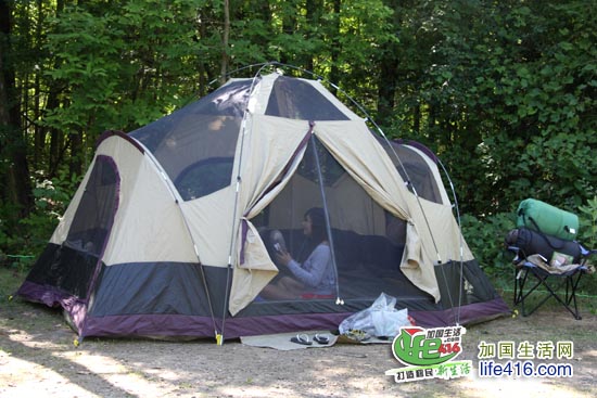 加国生活网小编以前曾到到魁省的省立公园露营过(请点击文章《魁省露营记(组图)》),不过那次去的时候是5月份,虽然已经是春季,但夜晚的气温竟然在零度左右,把大家冻个“半死”成为第一次露营的记忆。因此这第二次露营,小编选择的是8月中旬,虽然已经立秋,但安省气温仍是在27-28左右,而且湖水在夏末初秋的时候都是暖的,游泳也不会觉得凉。