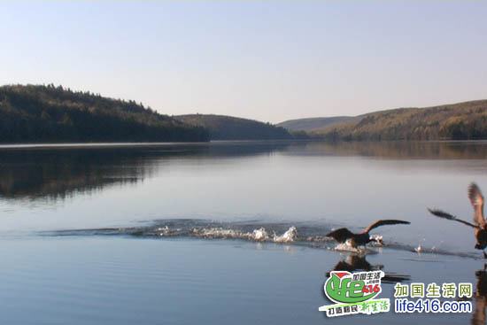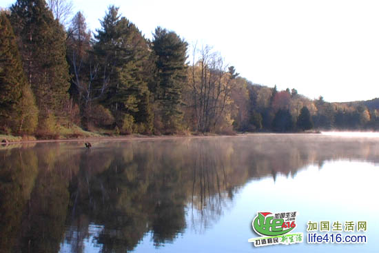 从渥太华到Philippe Lake大约一个小时的路程,国会山庄后的渥太华河是安大略省和魁北克省的分界线,过了河就是魁北克省。到达魁北克省境内,我们傻了眼,路牌和路名全是法语,而且到Philippe Lake的5号公路修路被封。我们只能一边问路,一边向目的地行进。