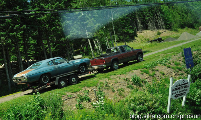 很多人开车来就是为了体验这个上坡时自动往上走的奇怪感觉,一个皮卡还拖着一个老爷车,大概是想试试,这怪坡到底有多怪。