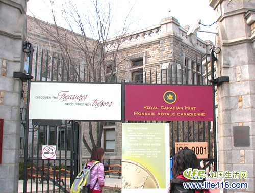 我们的下一站是加拿大皇家铸币厂(Royal Canadian Mint),这里主要生产各种纪念币。每年也会发行一些有纪念图案但仍然正常流通的纪念币,这些纪念币大多都在这里生产的。所以在皇家铸币厂参观禁止拍照和摄像。这里的几张照片都是在外面拍的。