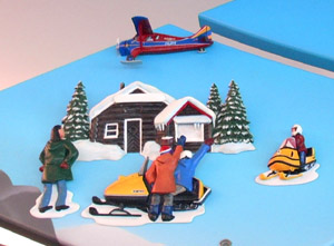 四楼门前的一个大地图,展示着加拿大由东部发展到西部的历史,加拿大人先是在东部靠着捕鲸为生,吃鲸肉、点鲸油,慢慢地向中部移动,发展林业、牧业、矿业,最后移到西部,越到西部建筑越现代些,西部还有了飞机场。