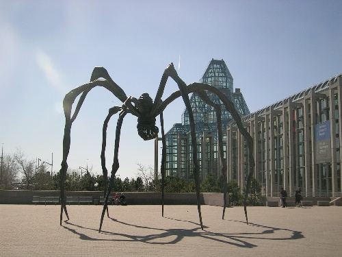 国家美术馆的大门广场上的有个巨型蜘蛛雕塑,在这只蜘蛛的腹部有26个白色大理石做的蛋。这座青铜雕塑大约有10米高,6000公斤重,花了3.2million美元,是一个法裔美国籍的艺术家Louise Bourgeois送给他妈妈的礼物,因此这座雕塑的名字就是“Maman”,它是视觉艺术的代表作之一,据说也是Louise Bourgeois制作的六只蜘蛛中的一只。