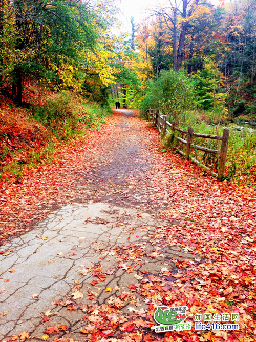 【加国生活网专稿】多伦多爱德华公园(Edwards Gardens)位于Lawrence夹Leslie的西南角,里面有一个Thomas J Bata Trail直通Sunnybrook Park。每天,有许多市民在这里跑步、骑自行车、谈恋爱、溜狗。就是在这段Trail里,曲径通幽,满目枫红。那片片的枫叶一点也不比Algonquin(阿岗昆)公园的差。